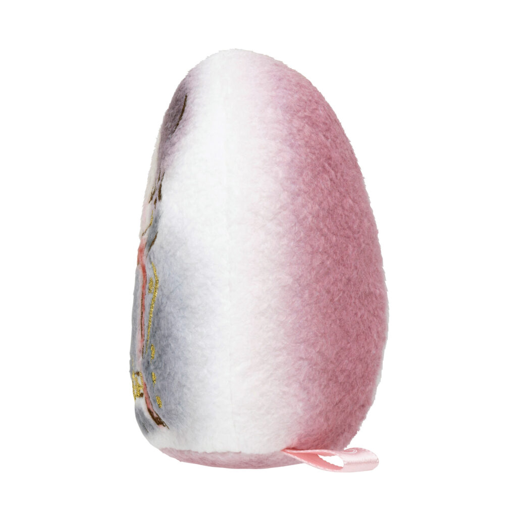 繭玉風の生地にさっと水彩画タッチで絵を描いたようなデザインの手のひらサイズのぬいぐるみです。